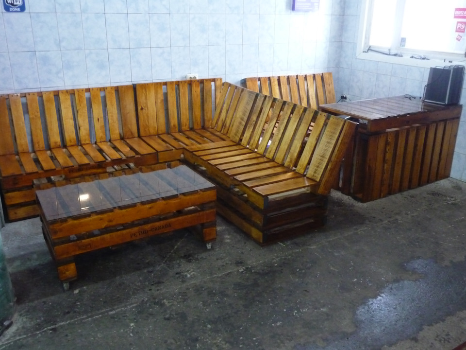 Так как на складе есть свободные поддоны, решено было сделать мебель.