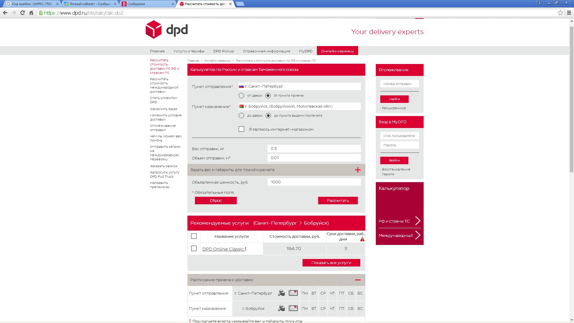 Отправка по Таможенному Союзу