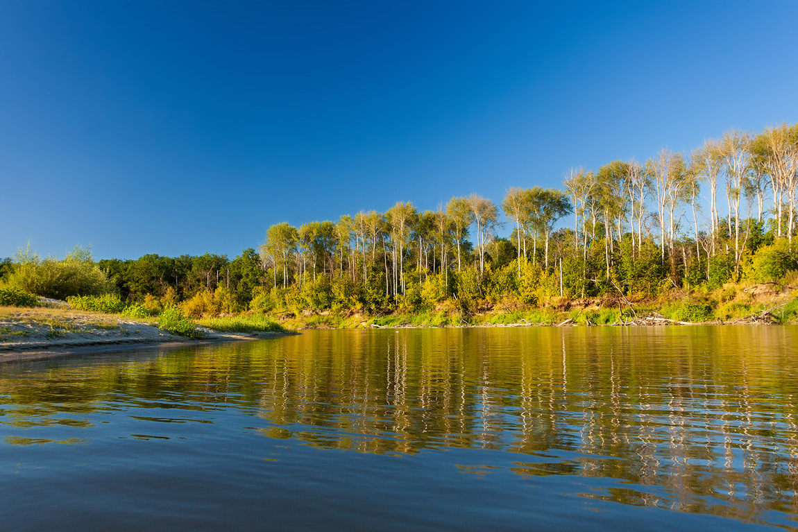 Утро… Свежее, легкое и воздушное. На Хопре постоянно дует ветер, которые слышен в листве тополей на берегах реки. Ветер здесь играет главную роль, он хозяин этих мест, он повсюду. Река Хопер днем невероятно красива. Сколько бывали тут, но все время с замиранием сердца смотрим на эти места вновь.