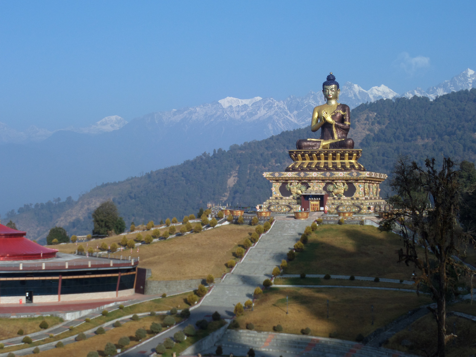 Еще одним не запланированным, но очень удачным местом оказался маленький городок Равонгла (штат Сикким, в который мы все таки получили разрешение въехать, правда всего на 5 дней). В Равонглу мы приехали, когда уже село солнце и надо было искать место для ночевки, когда мы зашли в первый отель, нас спросили "вы приехали в Будда парк?", поэтому с утра было решено посетить этот самый Будда-парк, о существовании которого мы до этого даже и не знали ))