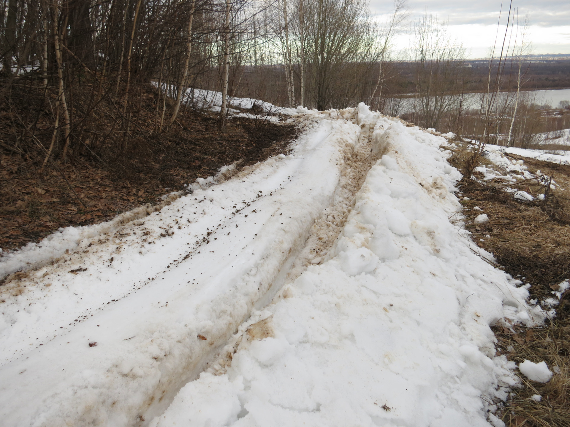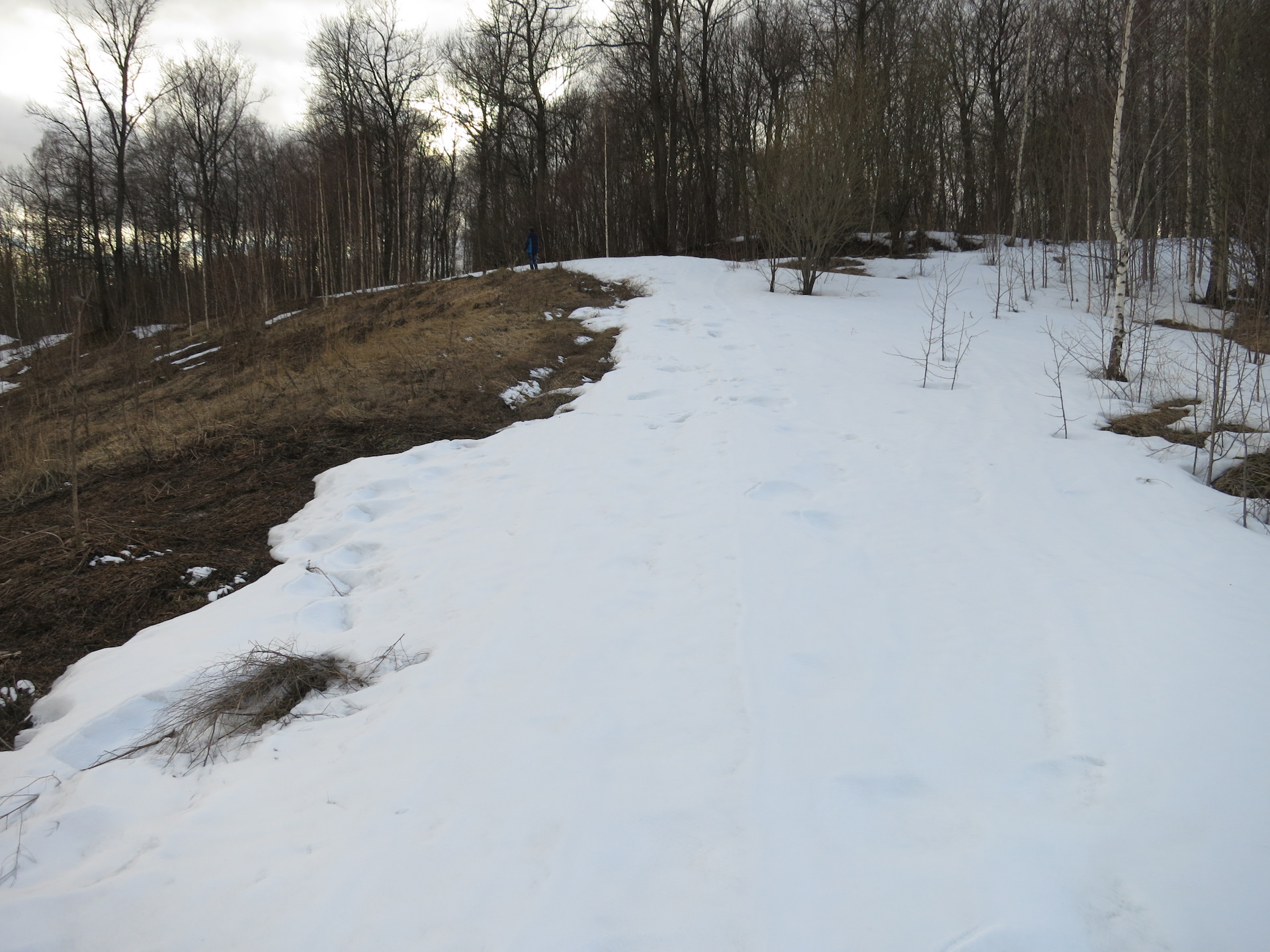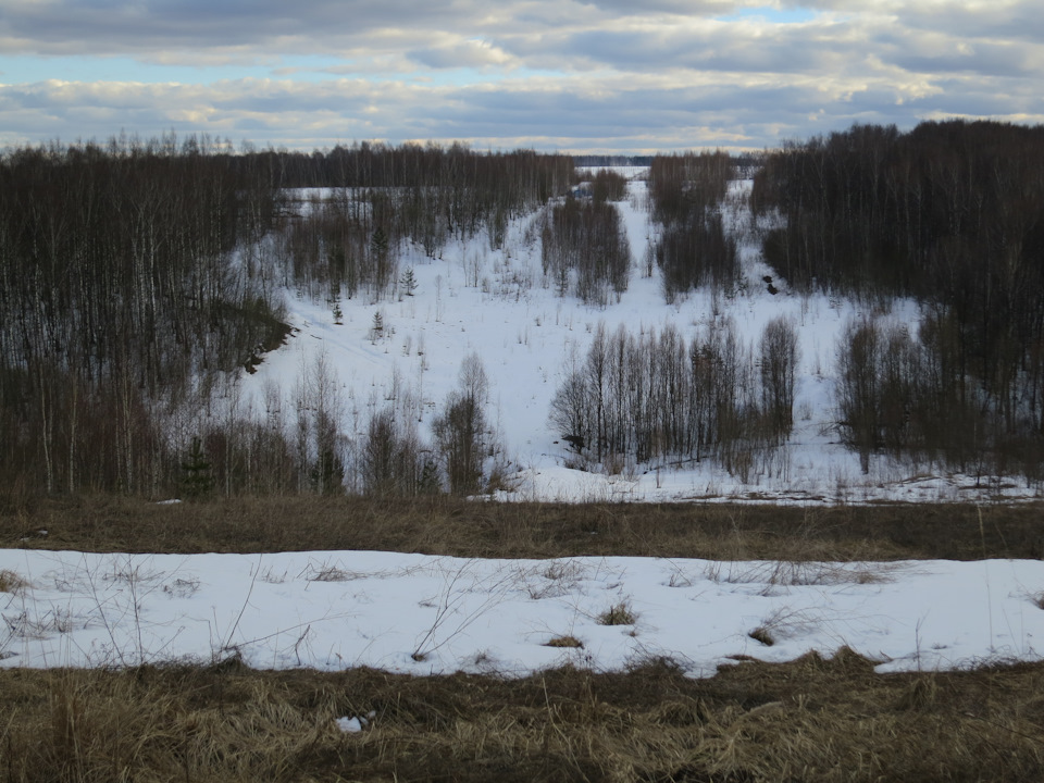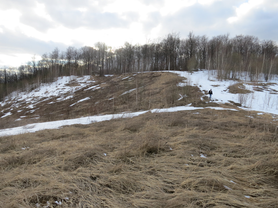 Однако надо было двигаться далее — предстоял более крутой затяжной подъем по достаточно узкому перешейку к лесу. Кроме уклона заехать мешал плотнейший снег, глубина которого как раз на траектории наверху доходила до полуметра.