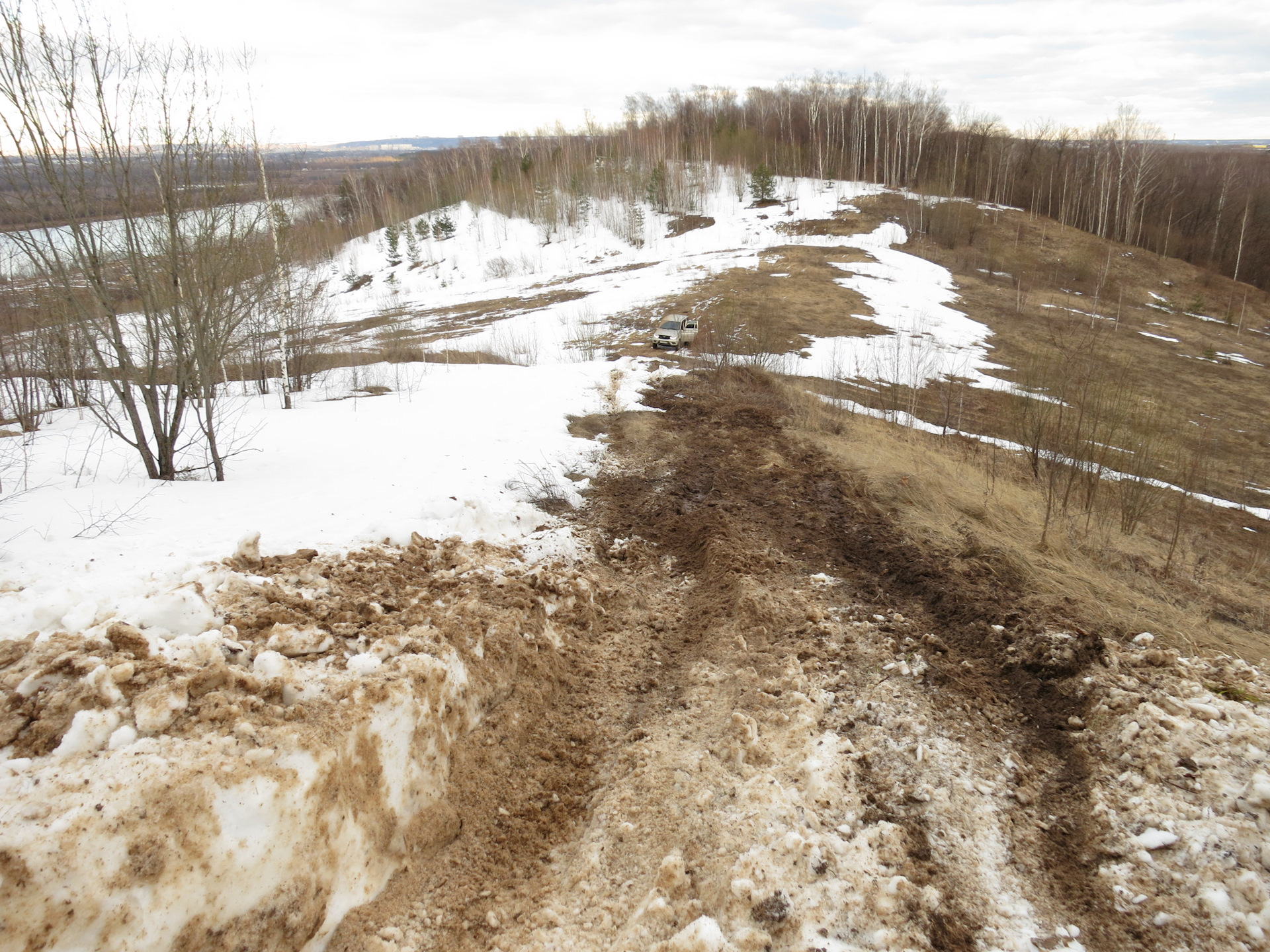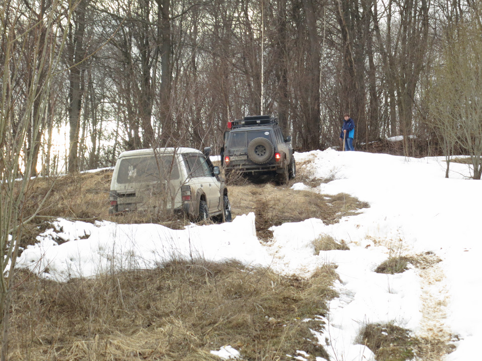 Подъем Паджерика был еще более мучителен — после нескольких попыток комфорсеры замылились и отказались цепляться за глину. Стравили их, еще откидали снега на пути и Митсубиши заехал.