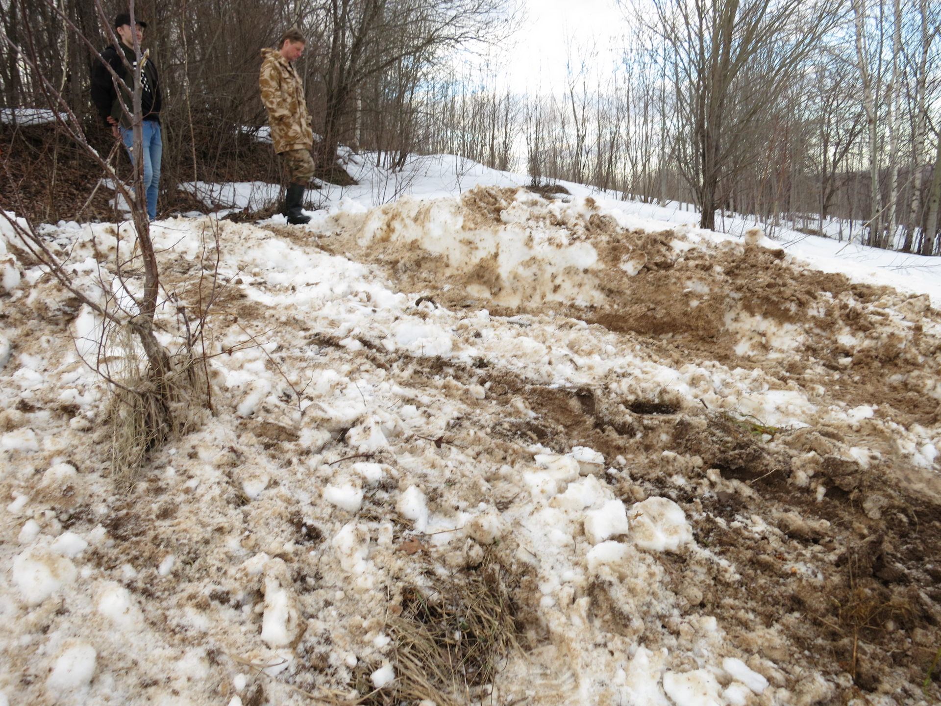 Лебедка опять не захотела работать, так что втроем взялись за лопаты, раскидали немного снег, после чего Патруль все же заскочил и поехал в лес набивать колеи.