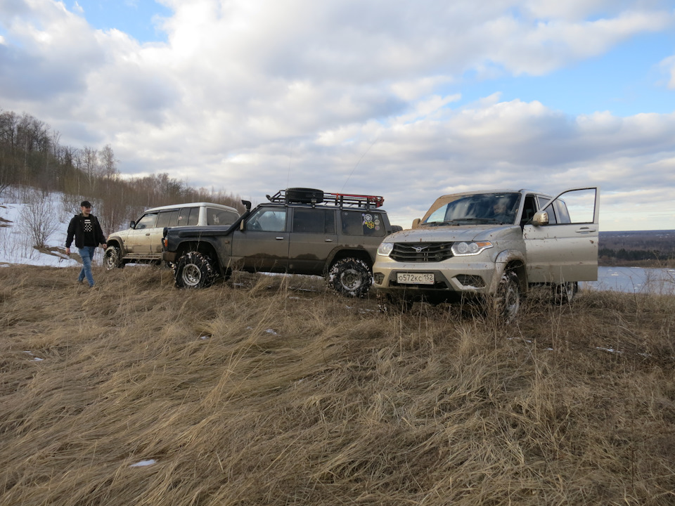 В поездке участвовало 3 экипажа; я был пассажиром / оператором УАЗ Патриот, так как на Соренте заскрипел левый ступичный подшипник (который я менял полгода назад, к слову).