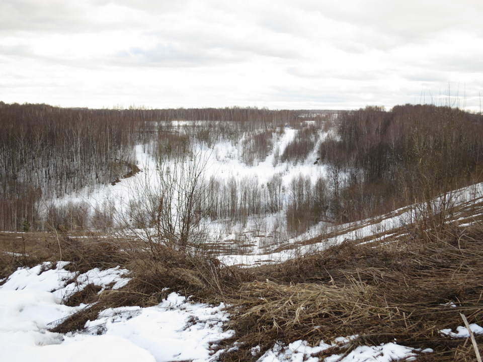 Наверху подъема виды в любую стороны открывались замечательные: с одной стороны была панорама Оки, с другой — долина с замершим озером и лесом.