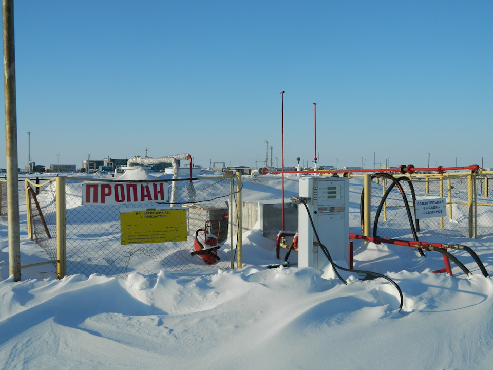 А вот и последний боле-менее оплот цивилизации на нашем пути, районный цент посёлок Тазовский. Здесь мы собирались пополнить баллоны автомобилей голубым топливом.