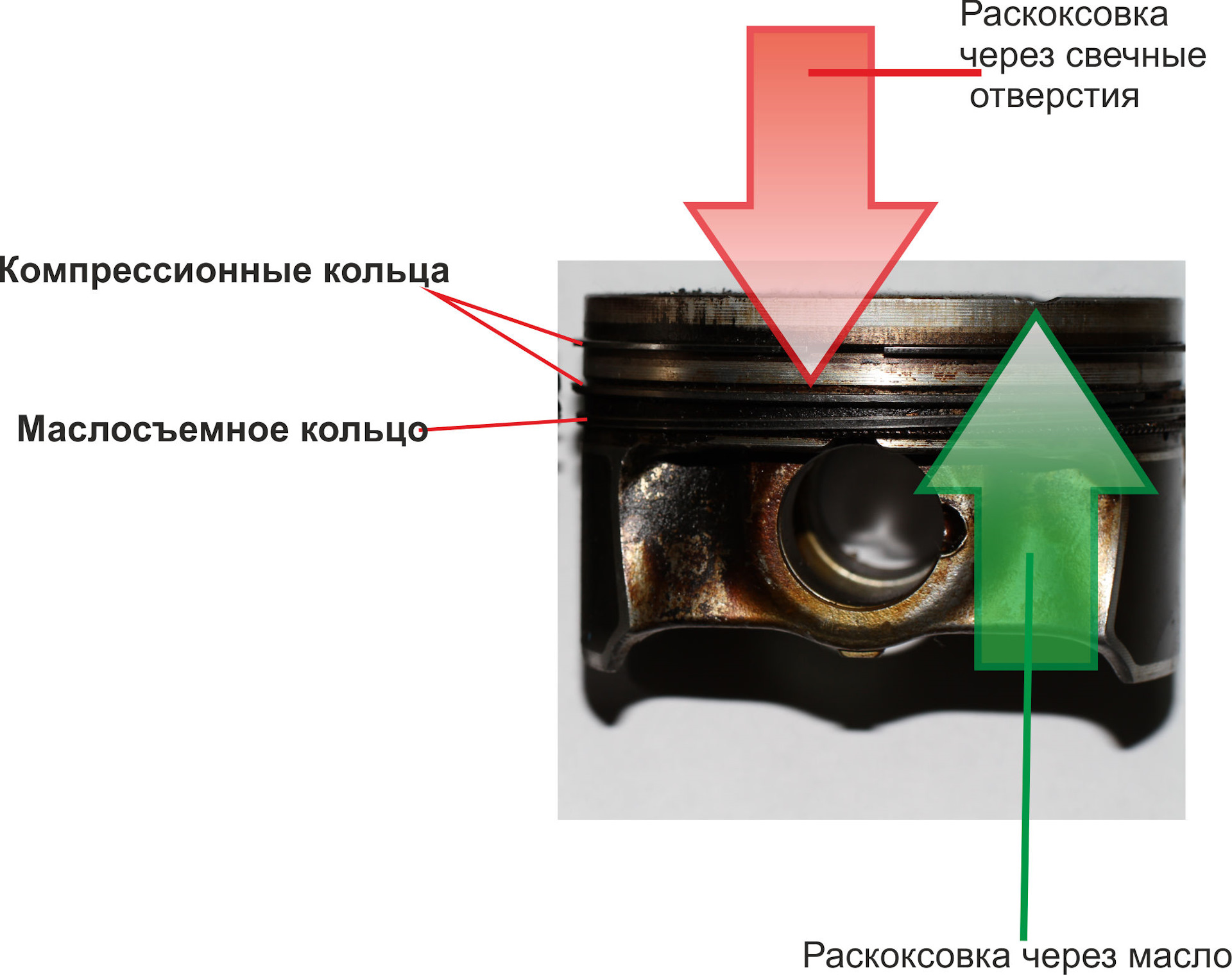 Но только их совместное применение гарантирует полную очистку поршневых колец от кокса.