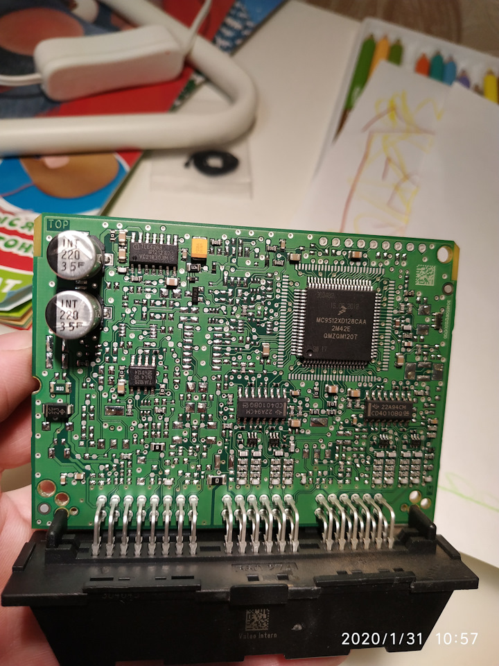 Вот у меня так же. Блок чистый, говорят они часто мрут от короткого замыкания в поводке датчиков (у меня снимался бампер, вероятно было кз). На вид кондеи целые, не знаю, есть ли смысл возиться с этим блоком или купить сразу б/у (я уже подкидывали заведомо исправный и он у меня заработал). И да, мой блок с Вольвы но разница не велика.