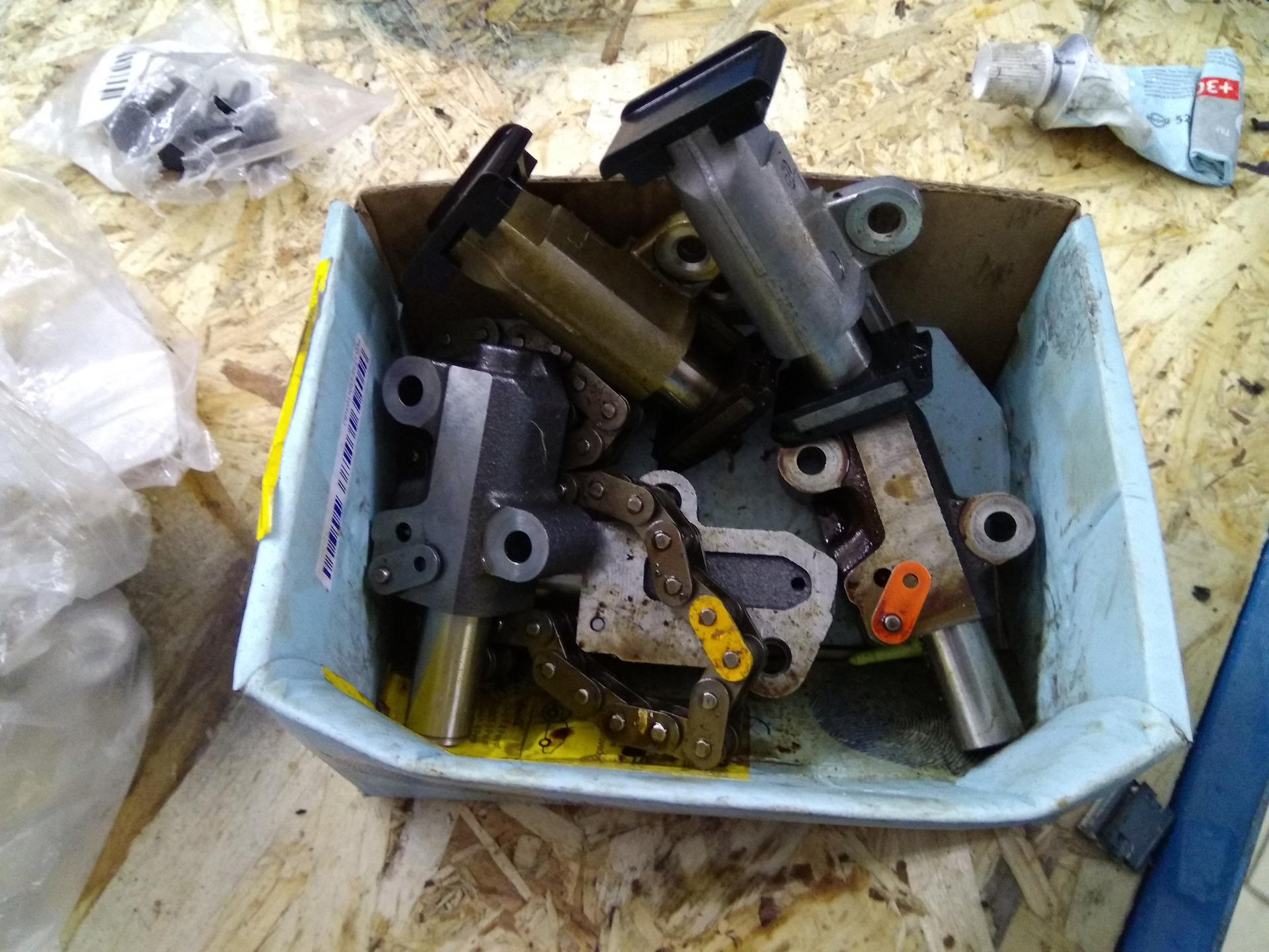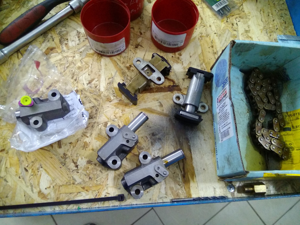 И так собрались наши цацки и в этот раз за наш счет, мы стали собирать Лёху в кучу. День собирали, два собирали, собрали, завели, все как в прошлый раз, пошумел поторохтел окояный и затих, стал шептать. Машину поставили на улицу и отзвонились хозяину, готово можно забирать. Через пару часов прибыл клиент, заводим и /и/и/и/ он сцуко тарахтит, как так, что за демон вселился в этот двигатель внутреннего сгорания, я в шоке. Тем временем Лёха ещё немного поторохтел и перестал, потом опять поторохтел и опять перестал. В конце концов мы договариваемся с клиентом, что он даст мне времени собраться духом или меня схватит кондратий. И так, дух и Лёха вернулись, по накатанной снимаем клапаны крышки и? Опять натяжитель, что за ххххххх…ня, два раза подряд, как так, не верю, в чём дело? Ладно, думаем, смотрим, видим, болтается только длинная цепь, распредвальная стоит плотно, значить прошлый натяжитель все же был косячный или всё же дело в другом, но почему опять явная проблема с нижним. Опять разбираем, мои слесаря очень мило и радостно взялись за работу, а что все ясно и понятно, по крайней мере как разбирать.