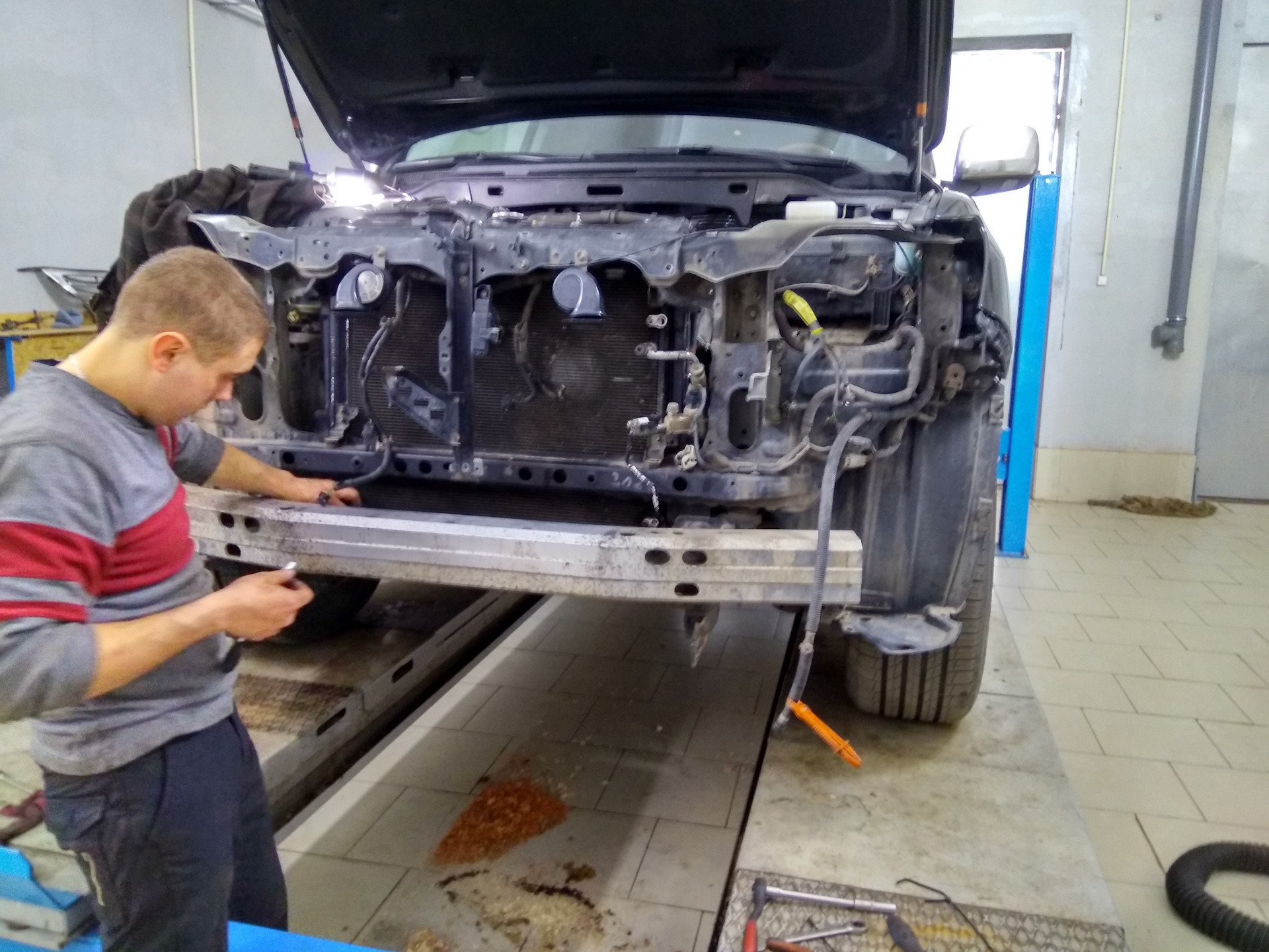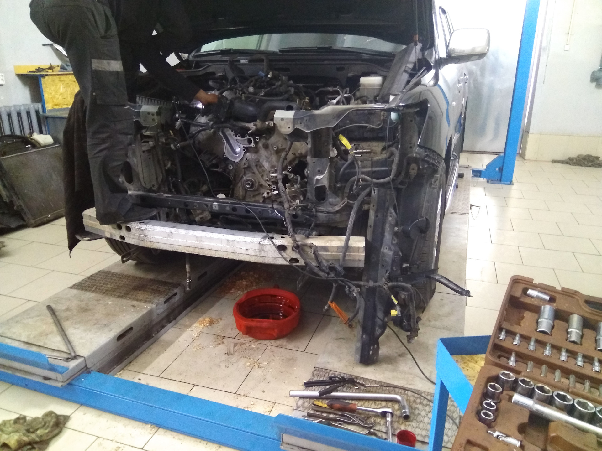 Разбираем по тихоньку машину, добраться к цепям ГРМ занятие ещё то, нужно разобрать всю "морду", бампер, фары, радиаторы, новесное, клапанные крышки, переднею крышку, при этом снять помпу, ролики, ремни, открутить кучу разных болтов, отстегнуть не мало проводки, слить соответствующие технические жидкости.