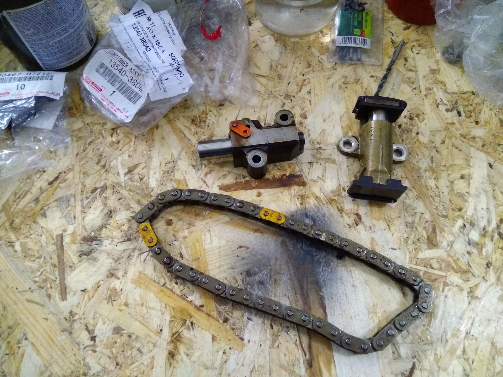 День на этот процесс потратить нужно, сборка тоже занятие вполне трудоемкое, плюс ещё нужно вымыть соответствующие детали. В общем добравшись к цепями стало ясно в чем дело.