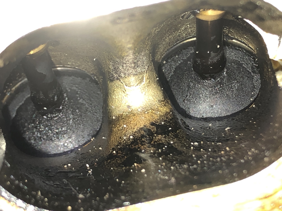 На фото результат применения очистителя GZox непосредственно в цилиндрах двигателя CDAB.