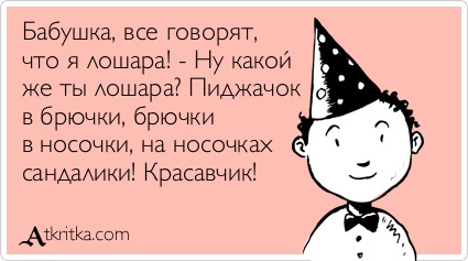 Ну дык, о вкусах не спорят! На вкус и цвет, как говорится! А самый шик, это носки со шлепанцами сланцами! Хех!