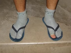 Ну и конечно же не стоит забывать о привыкаемости к определенным вещам. В штатах гораздо проще относятся к тому, что люди носят [примерно как и у нас в глубинке ;) ], и к такой форме обуви тоже относятся проще, просто потому, что она привычна. У меня, например, еще недавно туфли на голую мужскую ногу вызывали отторжение, а сейчас я уже сам подумываю о таких вариантах (для коротких прогулок). И вполне возможно когда-нибудь меня перестанет тошнить от штанов с низкой "мотней" и выглядывающими сверху семейниками Ж:-/