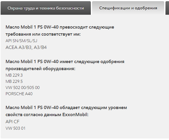 Масло Mobil 1 FS 0W-40 имеет одобрение автопроизводителя VW 502 00/505 00, но соответствует уровню свойств VW 503 01 согласно своих данных.