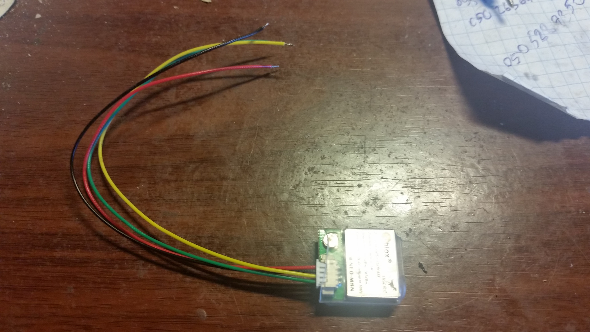 Кроме того, что китайцы что-то намудрили с цветом проводов (питание — зелёный, общий провод — жёлтый) пока доволен. На столе, за двумя окнами через минуту-две принял сигнал десятка спутников и определил положение. Посмотрим, как покажет себя в компе.