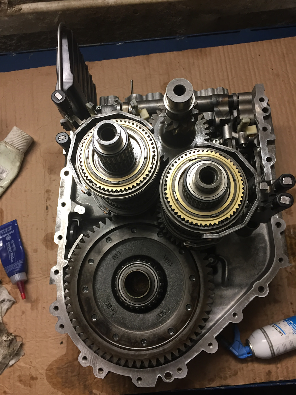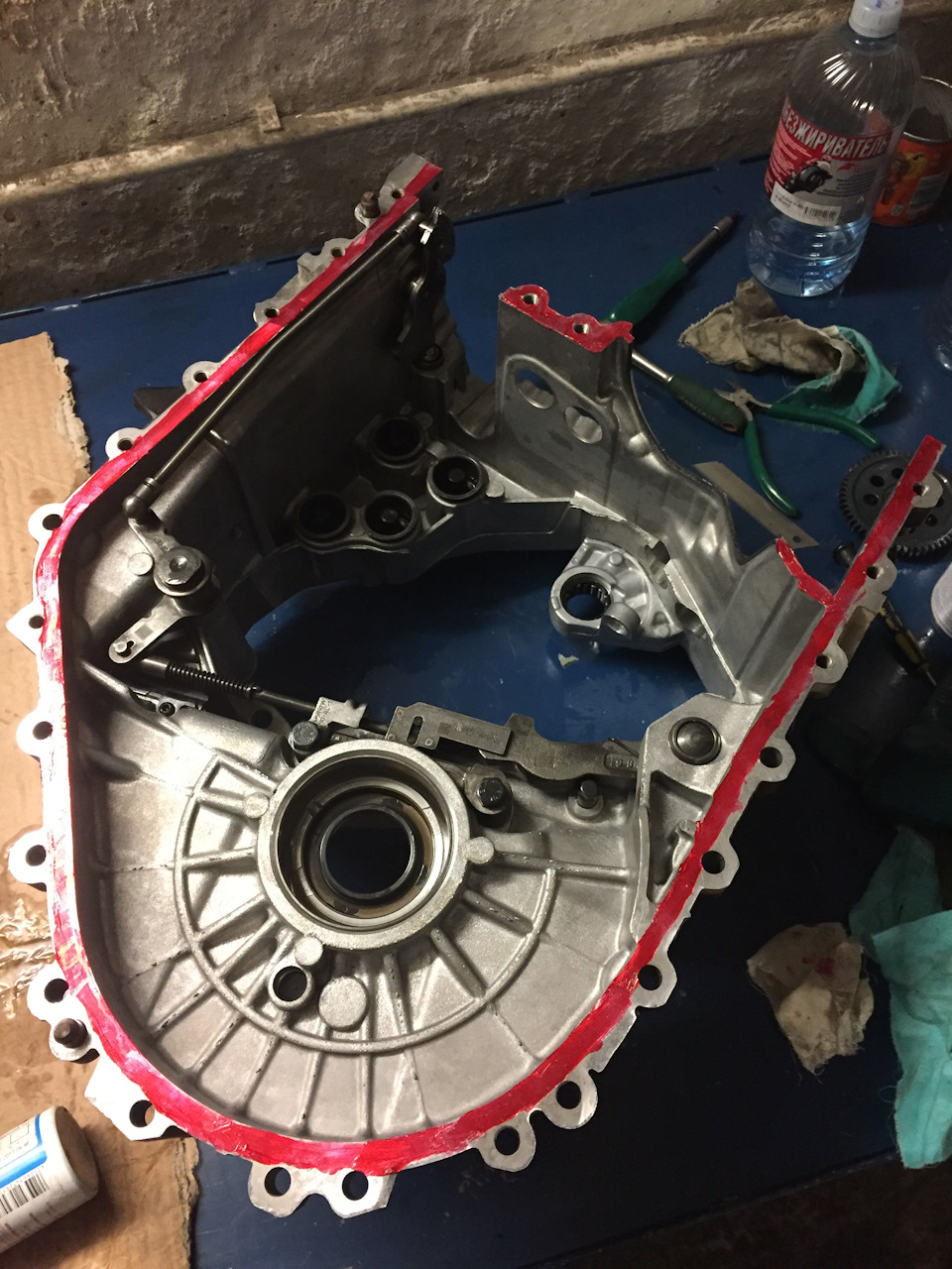 Запчасти шли долго (кожух сцепления ждали долго за нормальные деньги)… В итоге собрал АКПП, все затянул, проверил (ха, ха!).