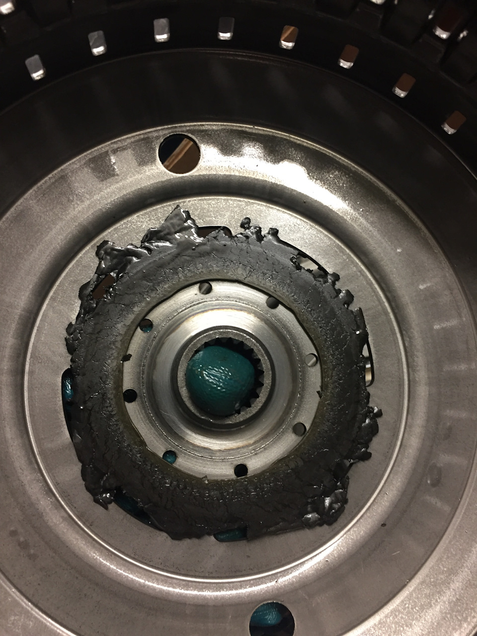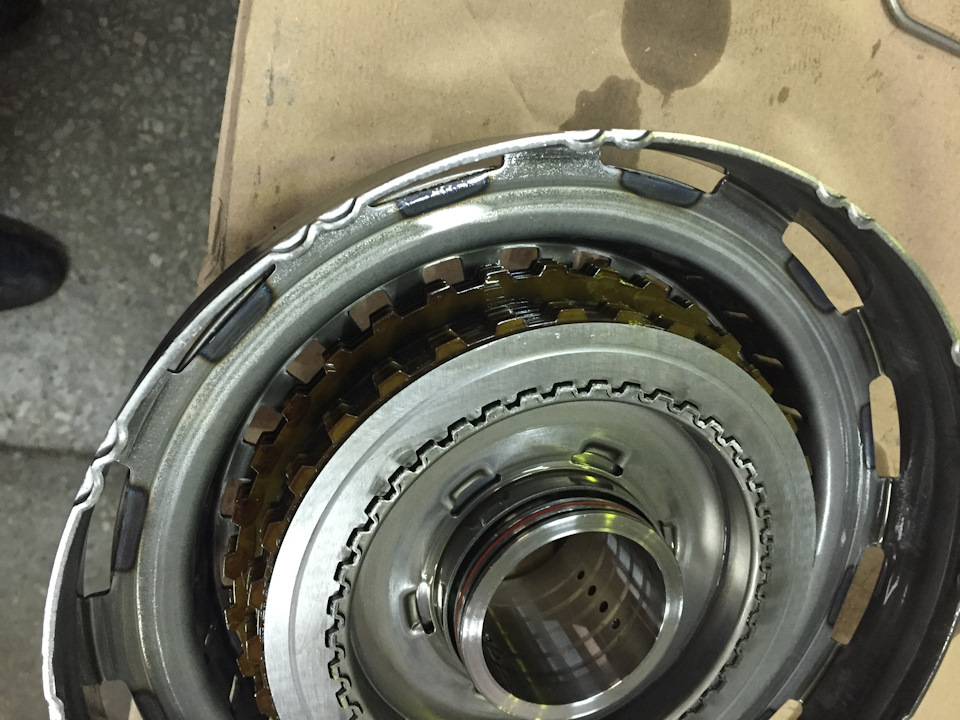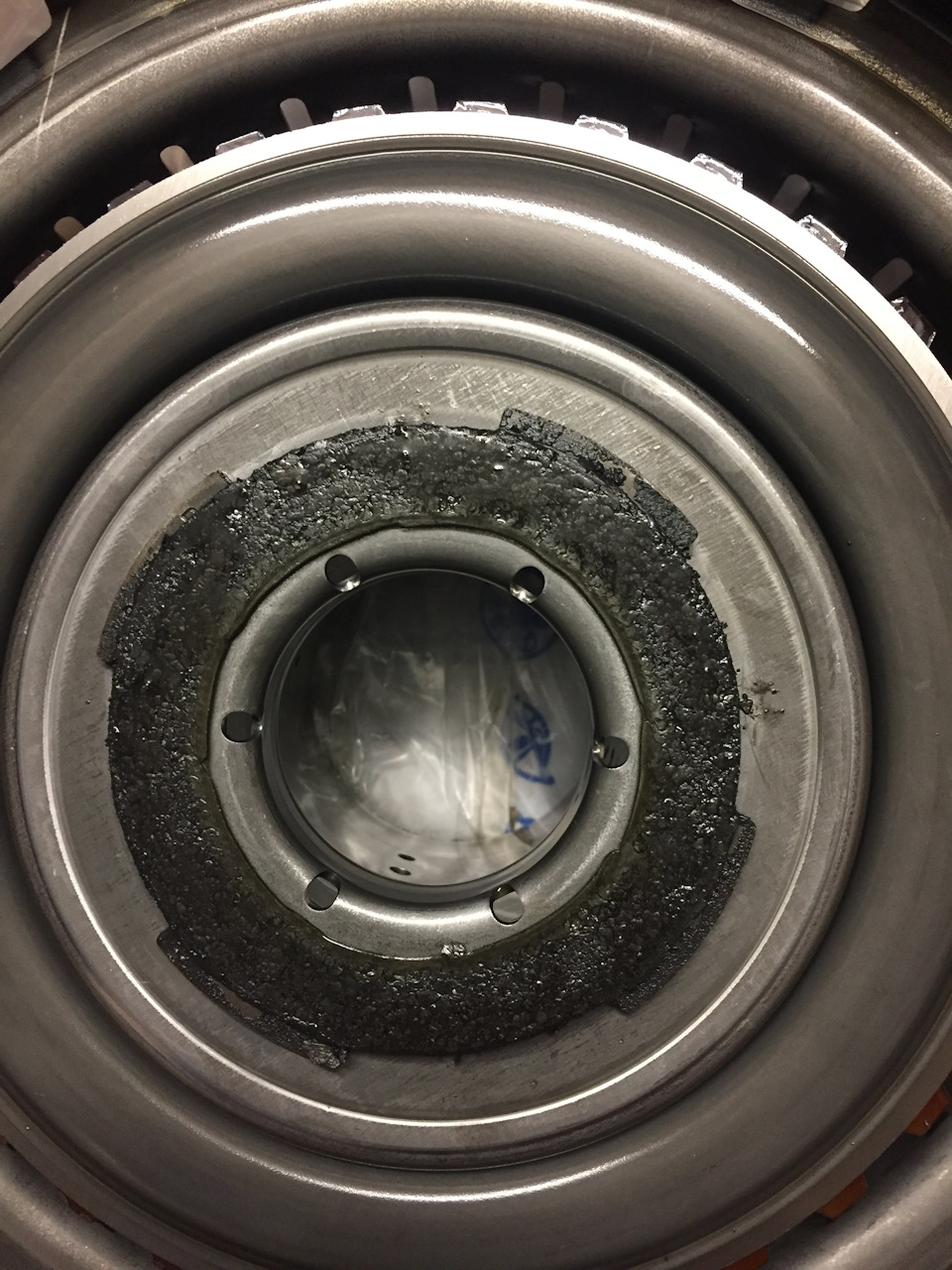 Явно перегретое сцепление и развалившиеся/расплавившееся прокладки между барабанами муфт сцепления.