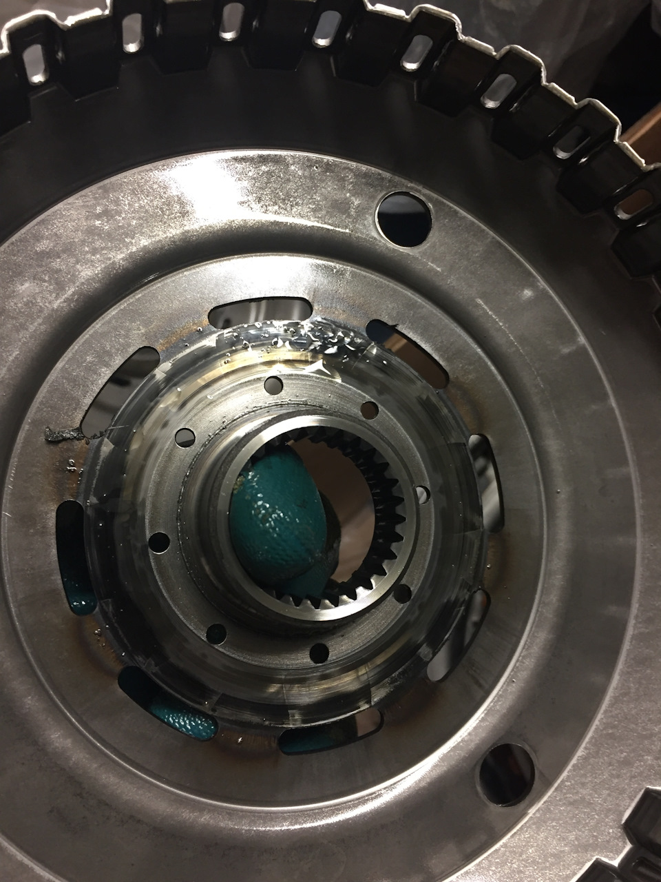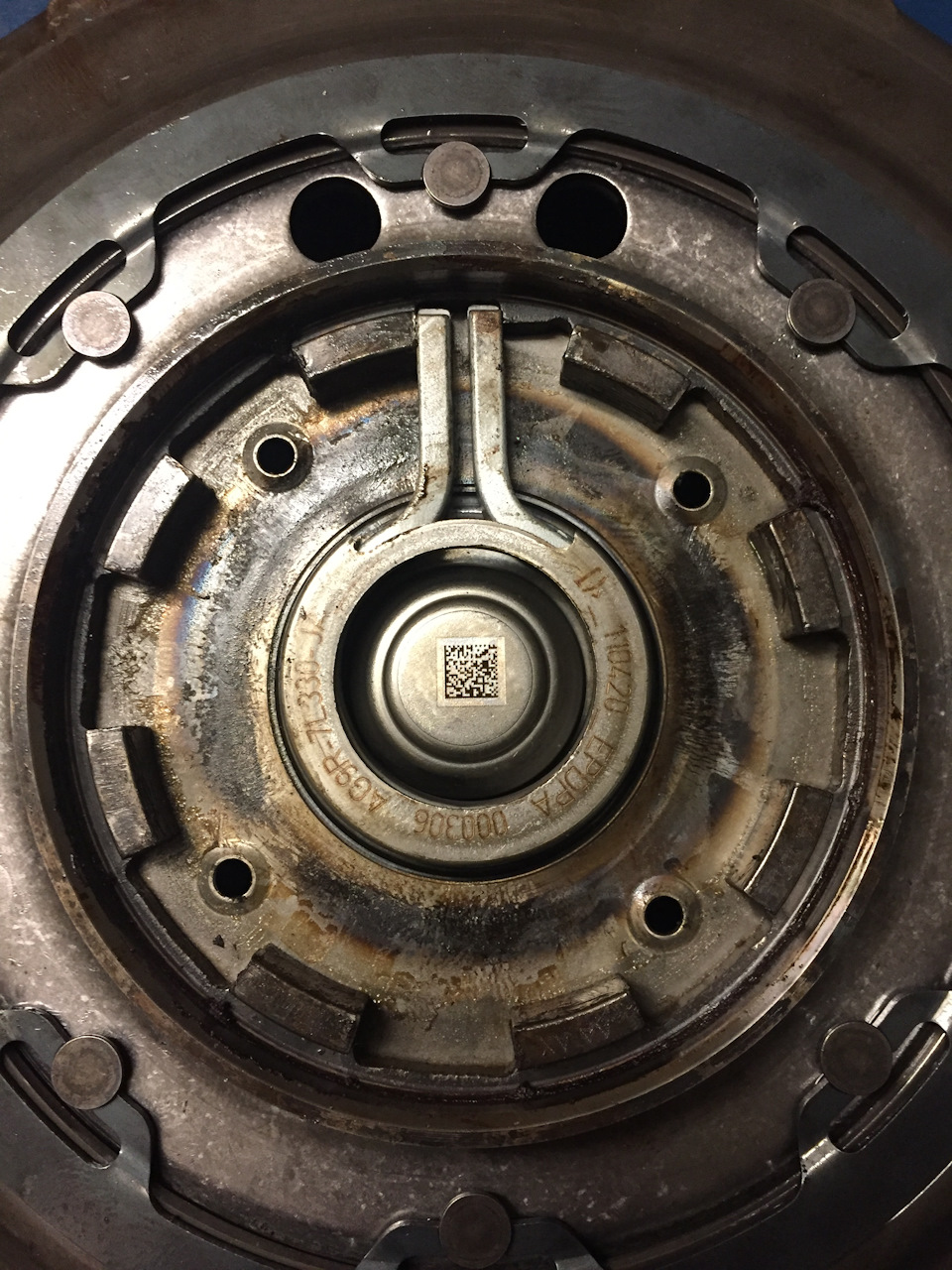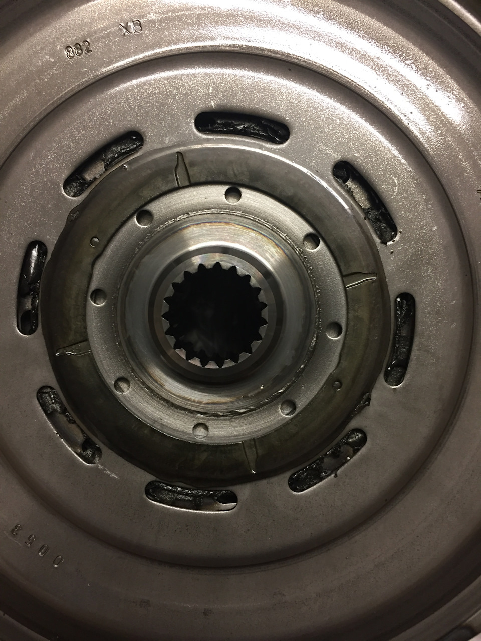 Явно перегретое сцепление и развалившиеся/расплавившееся прокладки между барабанами муфт сцепления.