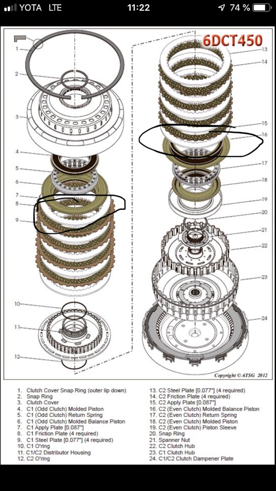 Потребовалась замена корзин чётных и нечётных плюс зажимной гайки (на них стёрлись пластиковые вошеры). Предложили сцепление в сборе с такой же коробки MPS6 DCT450, но не знают с какой машины было снято.