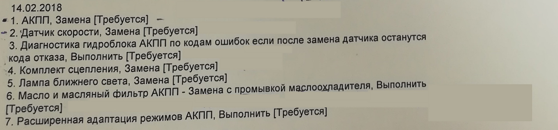 А если по работам и деталям, можете например разбить на категории. Ну сцепление (видел что 160тыс руб), гидробок (…), демпфер… просто примерно. пытаюсь понять для себя соразмерность риска и вложений. Хотя у меня 1.5 дизель с моно приводом и 40 тыс км, но ценник начинает пугать уже сейчас). Если все так плохо, то может в конце гарантии в трейд и её… спасибо…