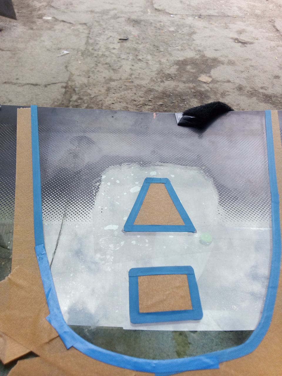 Ну что ребятки хочу поделиться, с вами переделкой обычного стекла, с текло с кронштейном под камеру. Процесс занимает почти целый день, самый опасный момент это травление стекла кислотой, дабы убрать шелкографию, потом долгий процесс полировки, разметки, и покраски праймером
