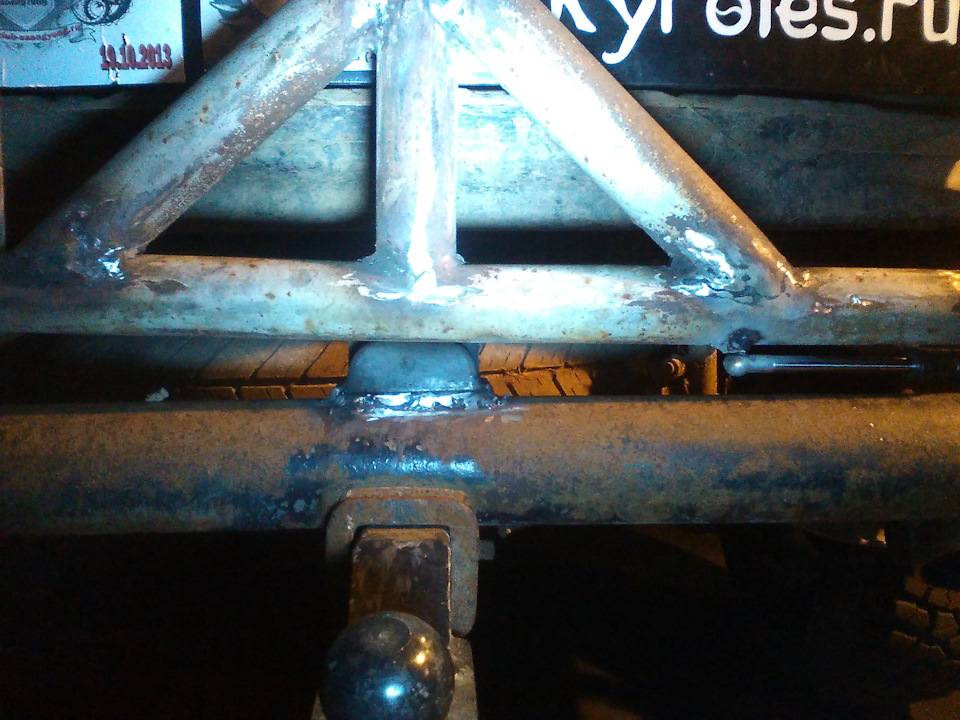 . Для крепления номерного знака, была приварена трубка и в неё уже вставлена трубка меньшего диаметра с планкой под номер и всё это скручено вместе