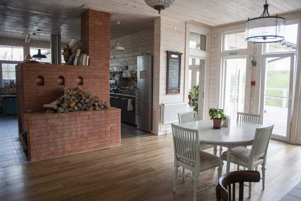 Больше всего мне понравилась именно домашняя атмосфера, которую удалось воссоздать на Даче. В любое время вы можете спуститься в гостиную, заварить себе чай или кофе и попить его на веранде. Сложилось впечатление, что мы приехали не в отель, а заехали к друзьям. Все вместе кушают, вечером можно посидеть у камина, пока дети в игровой комнате.