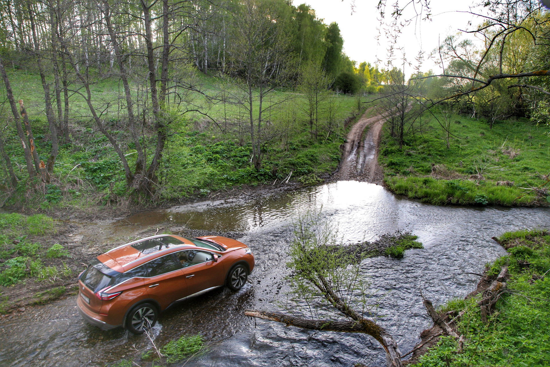 У Мурано не самый большой клиренс — 184 мм, зато честный полный привод, без имитации с электромоторами и т.д.