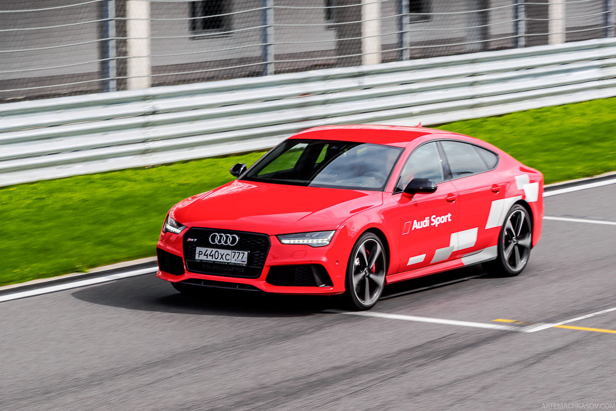А что же "обычный" S7 Sportback? Практически такой же четырехлитровый битурбированный V8. 450 л.с., 550 Нм, 4.4 до сотни. Та же платформа MLB, кинематически — те же подвески. Меньше усилений в конструкции кузова, но салон – один в один.
