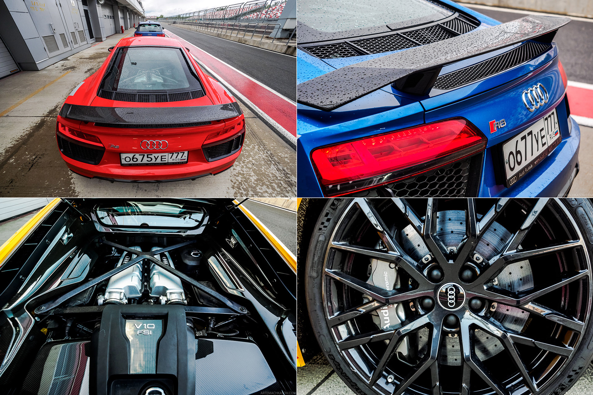 Если до этого сравниваешь управление R8 Plus с компьютерной игрой, тот тут уже все становится всерьез — управление все столь же безупречно, зацеп на сухом асфальте кажется бесконечным, просто автомобиль едет значительно быстрее, чем ты можешь себе позволить, не имя за плечами спортивного опыта. В этот момент я понимаю, почему передо мной так настойчиво "плетется" свои 220 км.ч. инструкторская RS6. Съехать с катушек и "порвать" себя на R8 — как нечего делать.