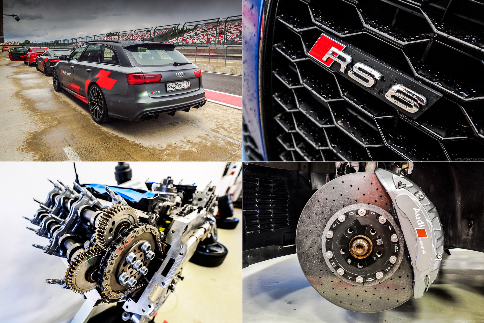 На гоночном треке за рулем RS6 ты… не понимаешь, что находишься на гоночном треке. Прижимающий к креслу разгон, гром выпускной системы — но вместе с тем, тотальное спокойствие в манерах. Сверкающая повседневность! Постоянный полный привод, механический центральный дифференциал, задний "дифф" с управляемым вектором тяги — даже на дорожных шинах, сорвать автомобиль с траектории практически невозможно. Невероятная для столь быстрой машины плавность хода сочетается тут с немецкой точностью попадания в повороты.