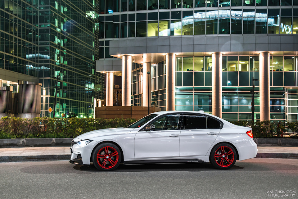 Сегодня хочу поделиться еще одной прошлогодней съемкой BMW, на этот раз в кузове F30. Съемка белого автомобиля ночью не самое простое занятие, но и не самое сложное — главное найти баланс между созданием качественного исходника и корректным пост-продакшном. Т.к. на фото-процесс уходит времени всегда меньше, чем на обработку, по заранее отработанной схеме сделали большую часть кадров на Арме и поняв, что хочется локацию сменить, поехали к Сити, благо свободным временем располагали. Однако поснимать со светом возле Новотеля не удалось из-за набежавших охранников, поэтому прежде чем критиковать эти фотки, стоит учесть время затраченное на создание исходников — не больше 30 минут на 6 кадров (точнее кадров было больше, но отобрал на ретушь в итоге всего шесть). Впрочем мне уже давно пишут про слишком большое количество фотошопа на картинках и наконец то я сделал фотографии и для этой части аудитории))