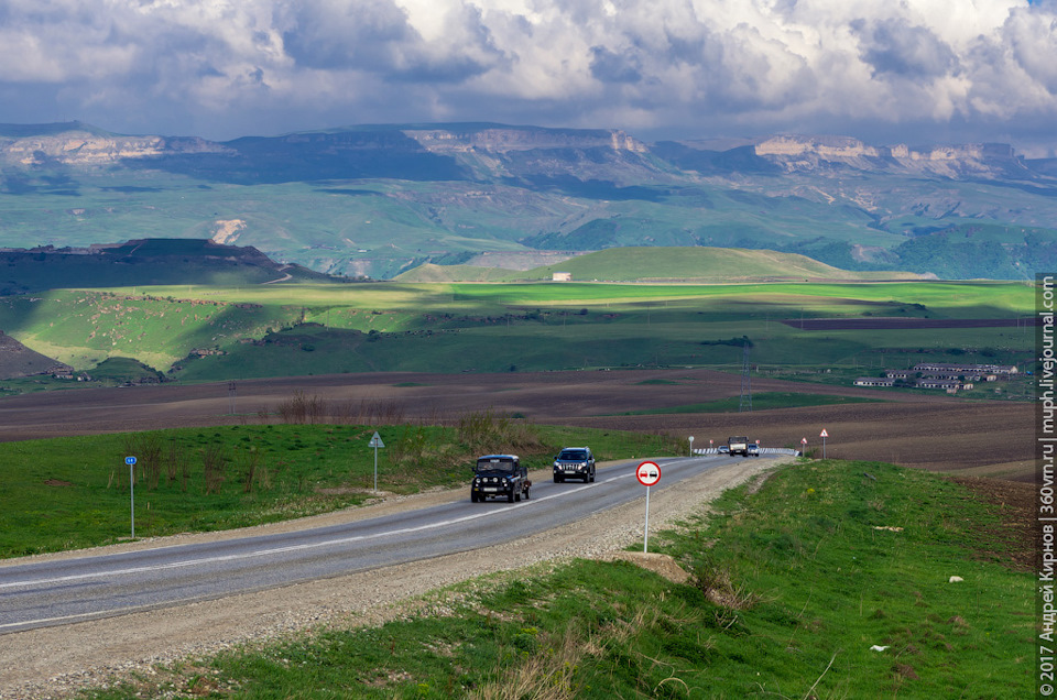 04. Около часа дня въехали в Карачаево-Черкесию. Начались периодические ремонты дорог, но мы не расстроились. На границе проверили документы. Сначала дпсник посмотрел права и свидетельство о регистрации ТС, потом отправил с паспортами (моим и жены) оформляться в вагончик. Причем, Пашину Ниву даже не останавливали. Он был на краснодарских номерах, возможно, поэтому. Захожу в вагончик и слышу знакомые с детства мелодии — играет некогда легендарная воронежская группа "Сектор Газа". Парень записывает данные паспортов в журнал, видит прописку жену, хмыкает и улыбается: "О, Воронеж, улица Старых Большевиков! А я там в военном училище учился!". Тоже улыбаюсь, приятное совпадение, чего уж тут… Прощаюсь и едем дальше.