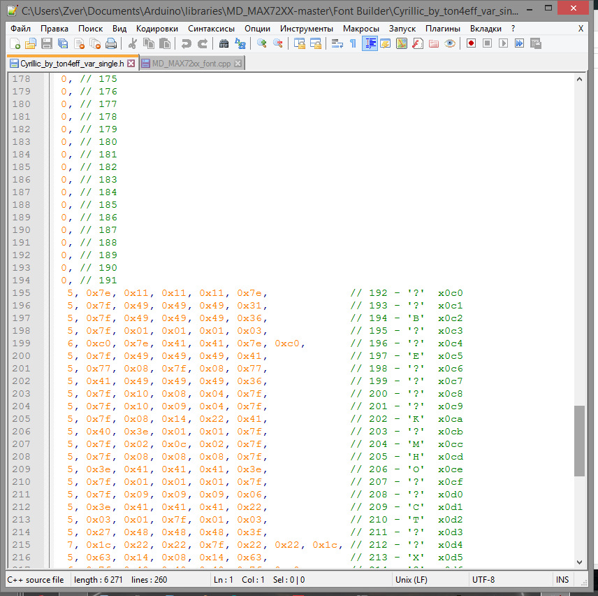 Заходим по пути C:\Users\ХХХХ\Documents\Arduino\libraries\MD_MAX72XX-master\Font Builder