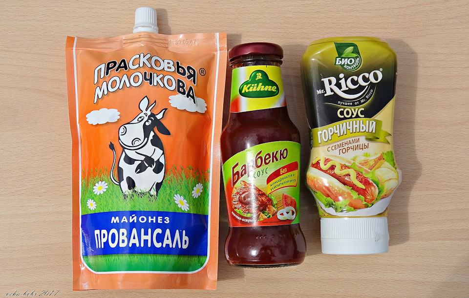 далее беру майонез, кетчуп и горчичный соус, это тоже только куплено в магазине…