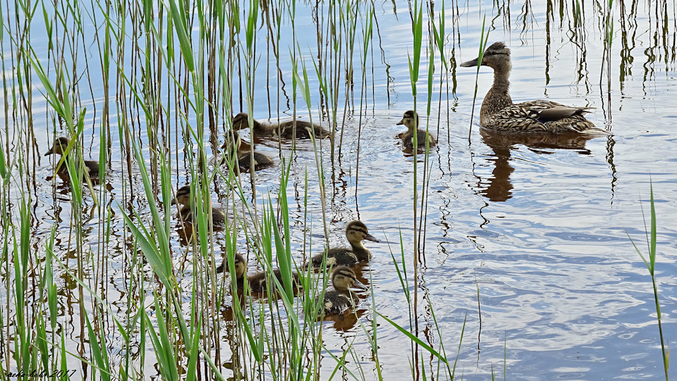 утка и утята все ближе к берегу!)
