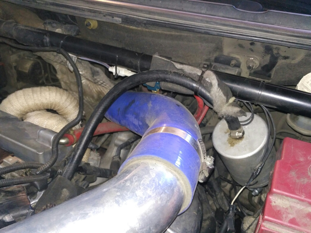 И так под капотом разместился фильтр, который соединен с рейкой садово-поливочным шлангом с хомутиком за 15 рублей из тазомага ! У нас тут давление в 6.7 БАР !.
