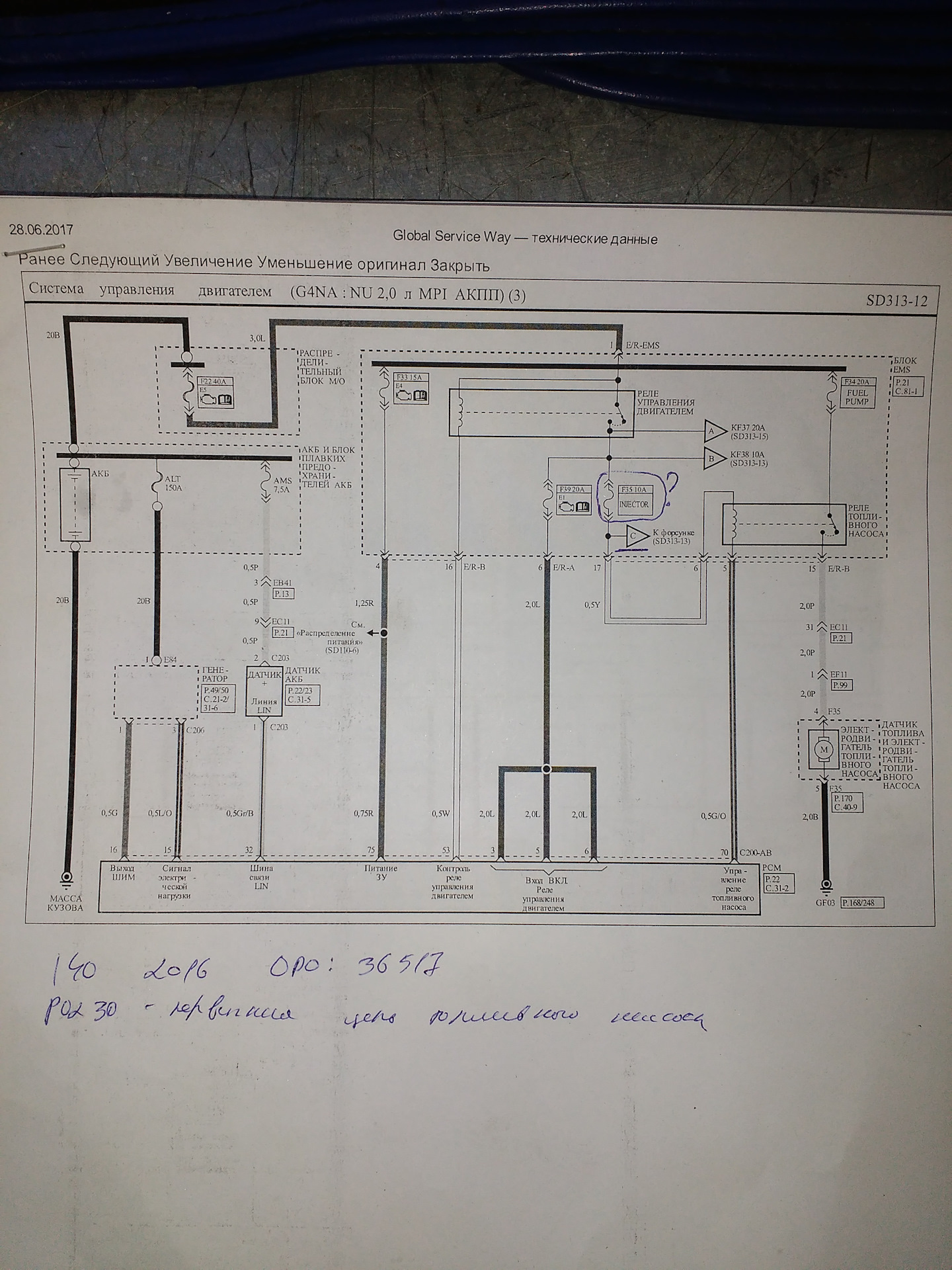 Предистория следующая : автомобиль заглох на ходу, обнаружили перегоревший предохранитель, заменили его, опять перегорел, затем заменили топливный насос (скорее всего исходя от ошибки см. ниже). Но предохранитель продолжал исправно перегорать. Так он и ощутился у меня…