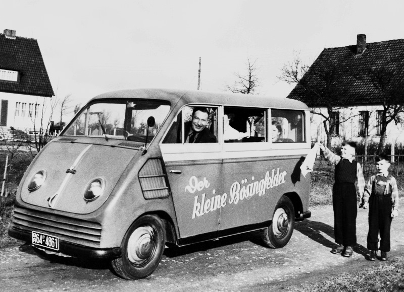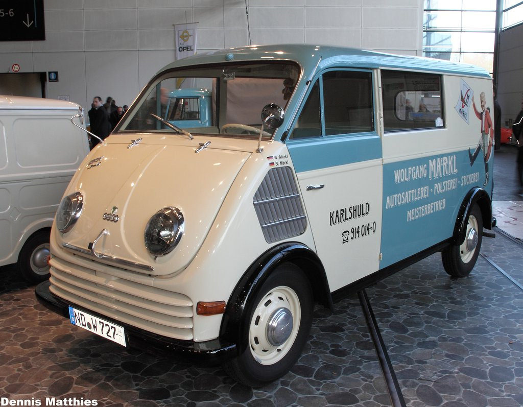 Как мы знаем, тот же фольксвагеновский "Булли" был спроектирован на основе внутризаводской технички как раз в конце 1947 года. Выпуск его стартовал в пятидесятом году, в исполнении "фургон". Однако годом раньше, в Дюссельдорфе, компания ДКВ представила, и серийно стала выпускать свою разработку — фургон Schnellaster.
