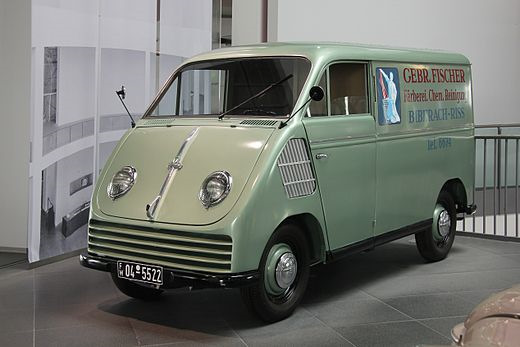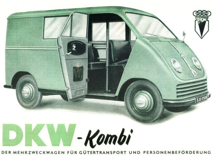 Собственно, это был небольшой коммерческий автомобиль с однообъемным кузовом (что дает нам основание говорить о нем, как о предтече современных микроавтобусов и фургонов). Мотор был расположен спереди, и благодаря удачной компоновке автомобиля, и прежде всего переднему скосу, обзор на дорогу был куда лучше, нежели у основного конкурента — Транспортера Т1. Оснащался фургон ДКВ чахленьким двухцилиндровым мотором в 20 л.с. До войны они устанавливались на мотоциклы, которые тогда в очень больших объемах выпускала компания ДКВ.