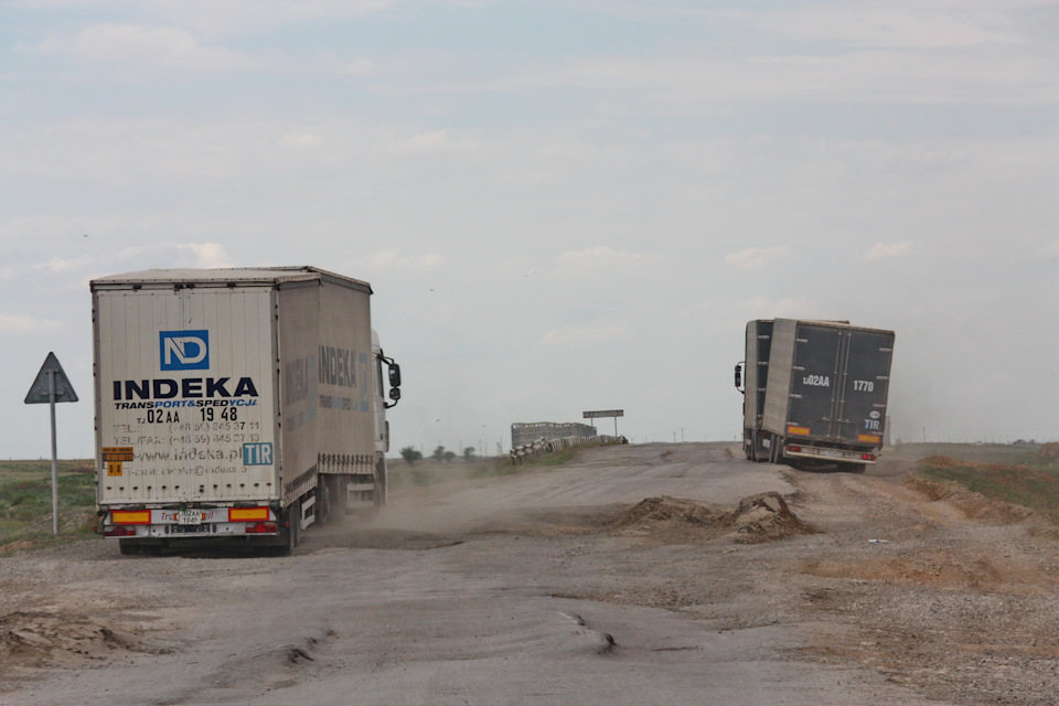 От Шетпе до Актау и далее до Жанаозена трасса еще строится, но проехать по ней так же не составляет никакого труда. Больше не приходится "глотать пыль по ухабистым проселкам и тратить массу времени на эту часть пути. К сожалению, дорога от Атырау на Астрахань находиться все в том же отвратительном состоянии что и много лет назад, но по словам местных пограничников, в этом году должны отремонтировать и ее.
