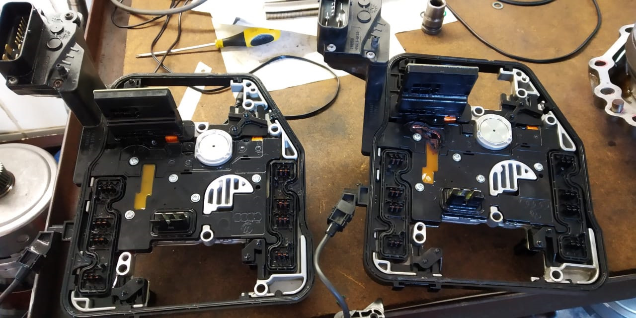 Здравствуйте, подскажите пожалуйста у меня golf plus 1.4 tsi, коробка dsg 7, не давно коробка перешла в аварийный режим и перестала ехать вышла ошибка что перегрев Коробки, сгорел предохранитель, я его поменял и он сразу снова сгорел, понял что проблема с платой, отвезли в сервис сказали да сгорела плата, дальше в сервисе поменяли сгоревшую плату собрали коробка заработала, вроде как прошивку сказали со старой платы скачали и поставили, коробка работает но не так как надо плюс мастер говорит что коробка не проходит адаптацию, и они не знают почему, попросили пару дней поездить чтоб вышла ошибка и они могли понять, заехал к другим ребятам они попробовали сделать адаптацию и вроде сказали выходит ошибка 58, и что в коробке слишком быстро падает давления из за этого первая передача включается только с повышеных оборотов)как думаете где нужно копать?)