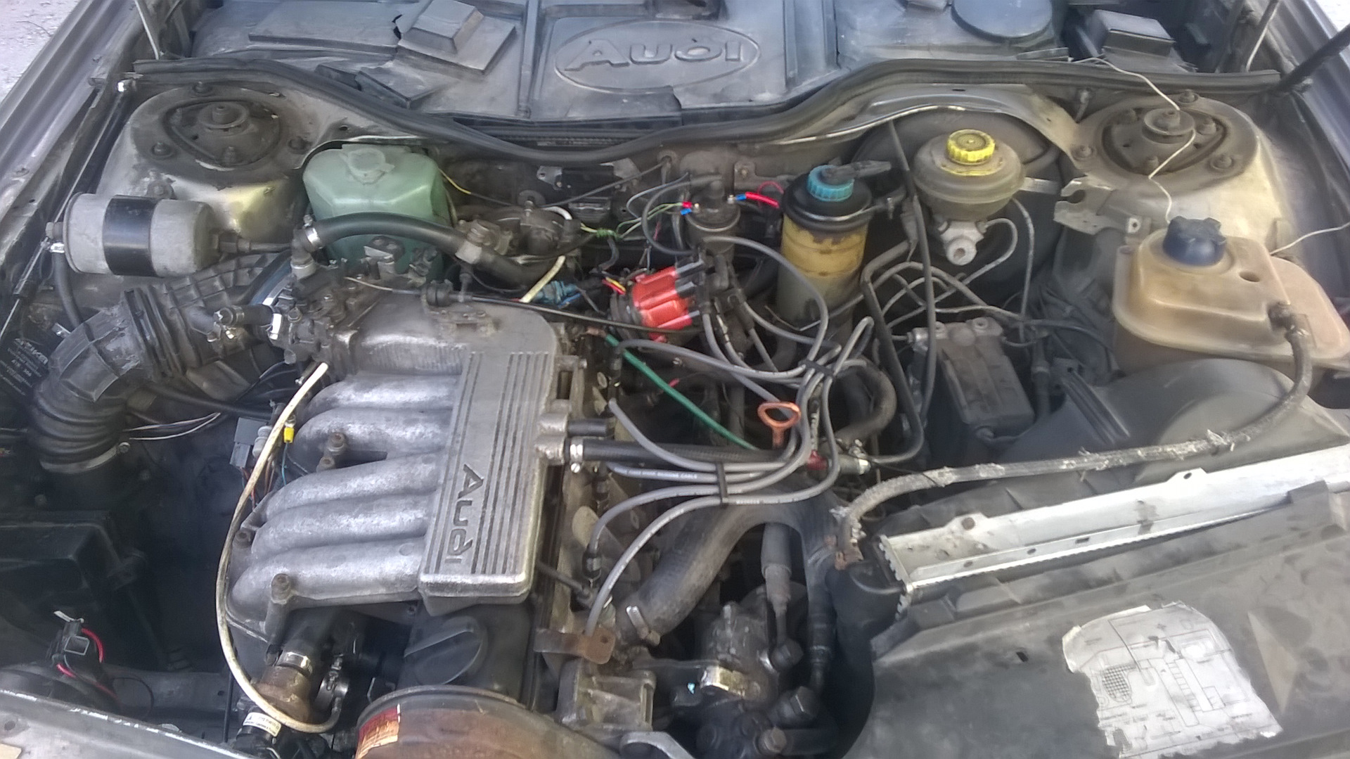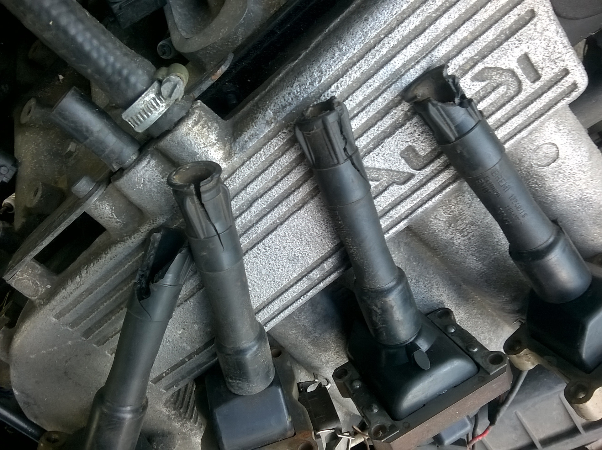 Открыли капот. Вроде все на месте: 5-ть индивидуальных катушек, 5-ть форсунок, Январь 5.1 (вернее переделанный, навесным монтажом, Микас 7.6 для работы с 5-ть цилиндрами, накрытый крышкой от 41-го Января) вроде, на поверхностный взгляд, с полным набором датчиков. 1 цилиндр точно не работает. Пытался подключиться диагностикой. Не вышло, ЭБУ на связь не выходит.