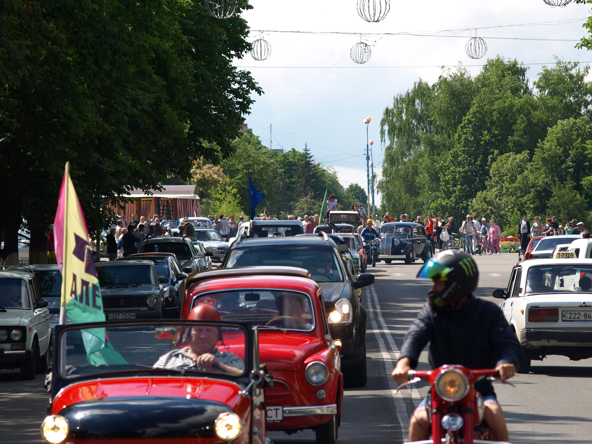 На мероприятие съехалось более 120 ретроавтомобилей и мотоциклов с разных уголков Украины. Мероприятие началось с парада по городу. Получилась очень эффектная картинка: более 30 представителей авто- и мототехники прокатились по узким улицам компактного 100-тысячного города.