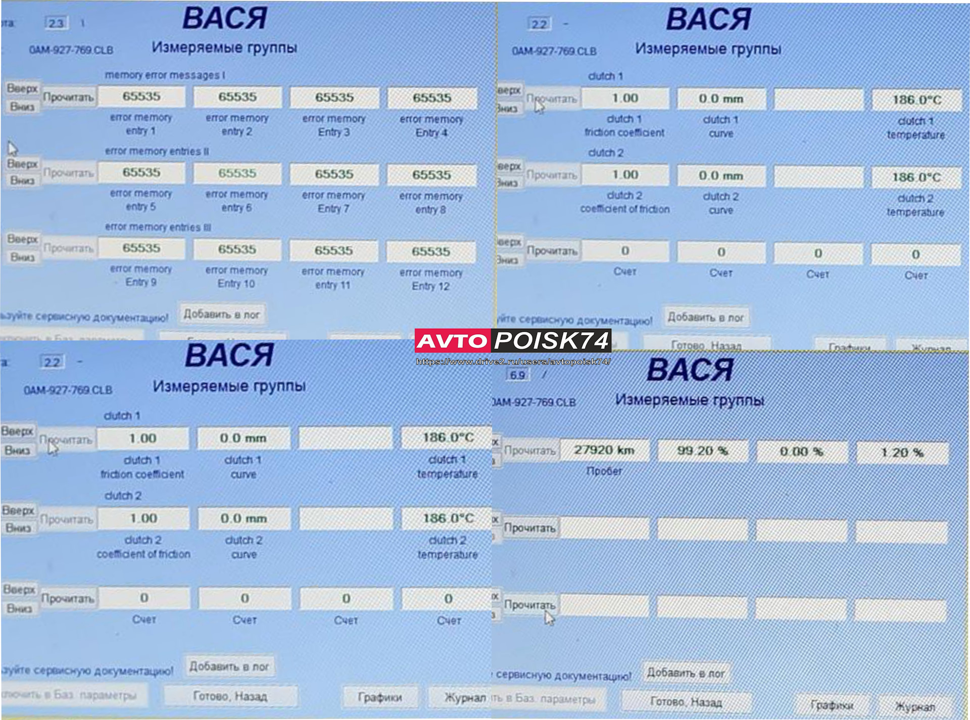 Ошибки мехатроника так же проверяются именно на DSG7. Во всех окнах должно быть 65535, если там иные цифры, то мехатроник имеет ошибки, а значит, скоро будет его ремонт.