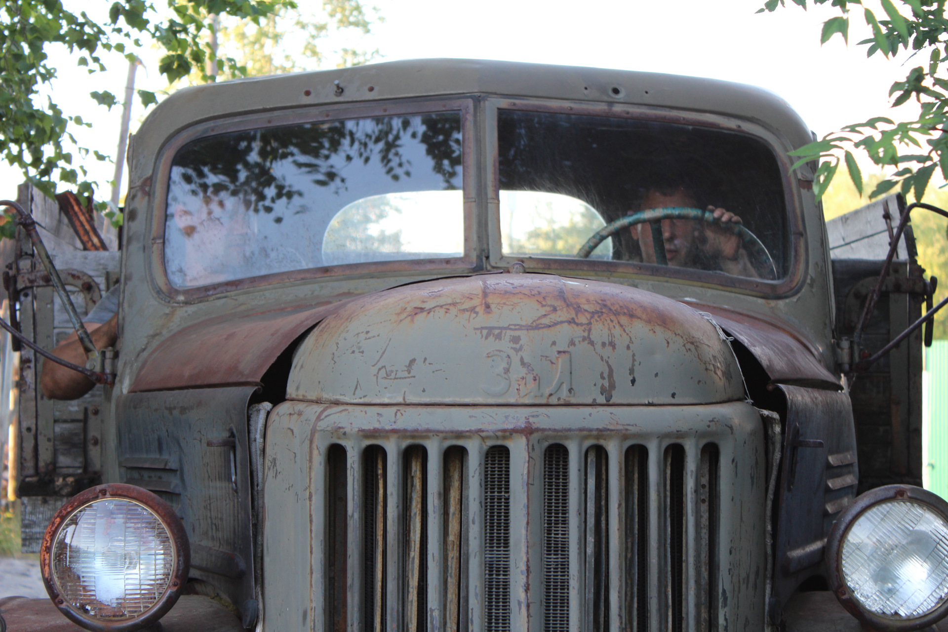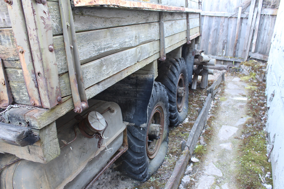 Снова запуск. Первая передача и Зил, буксанув задней тележкой, спрыгивает вперед с чурбаков на землю. Потом, было полчаса маневров вперед-назад по выкатыванию с места почти вечной стоянки. ЗиЛ стоял настолько давно, что вокруг него построили целую дачную улицу. И в этом вот стесненном пространстве надо было развернуть грузовик с радиусом поворота в 11 метров, без гидроусилителя и с подзакисшим рулевым. Офигеть!
