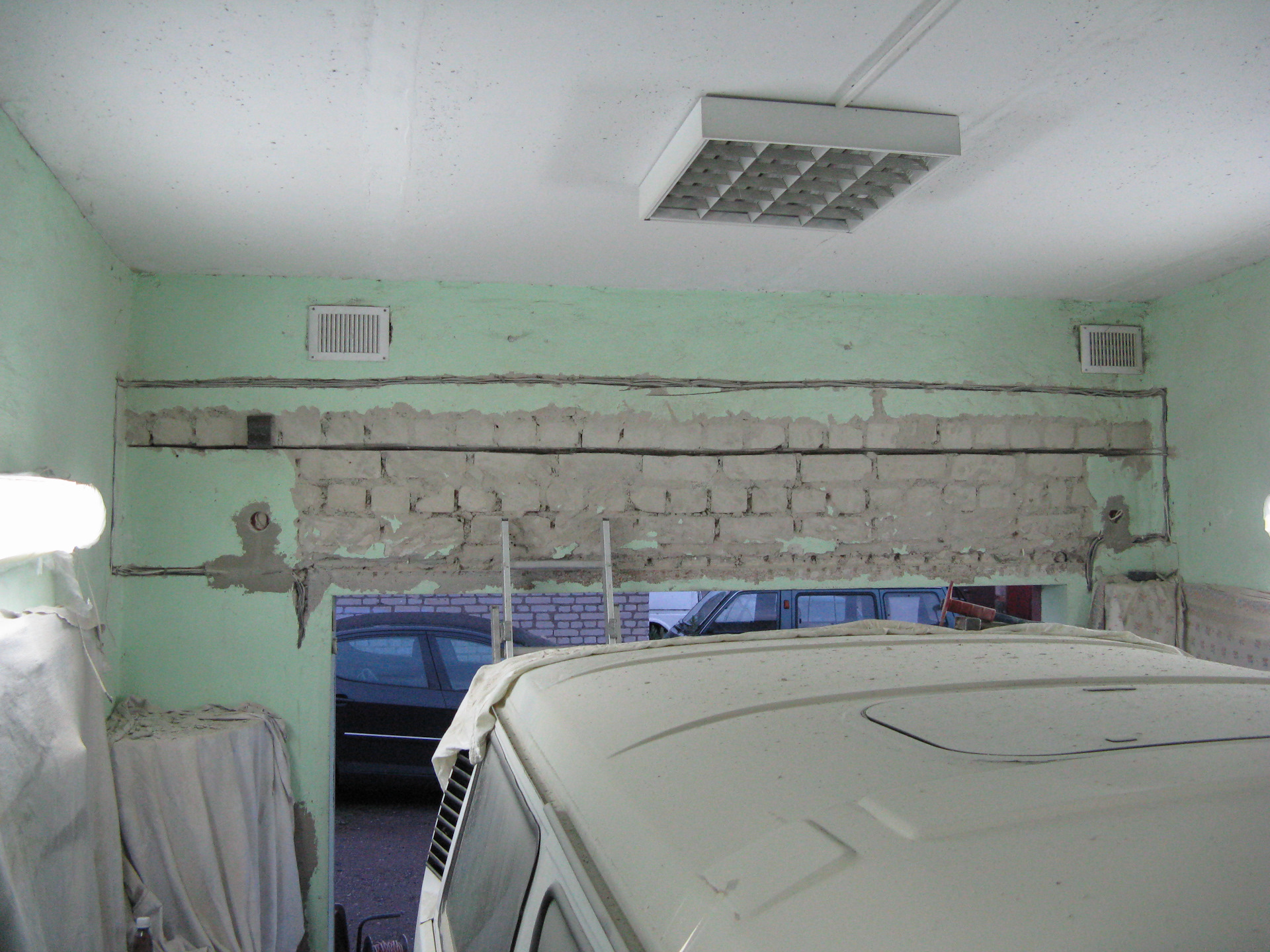 Сейчас прям над воротами лежит бетонная перемычка, её придется убирать при этом думаю частями, т.к. из стены её не достать.