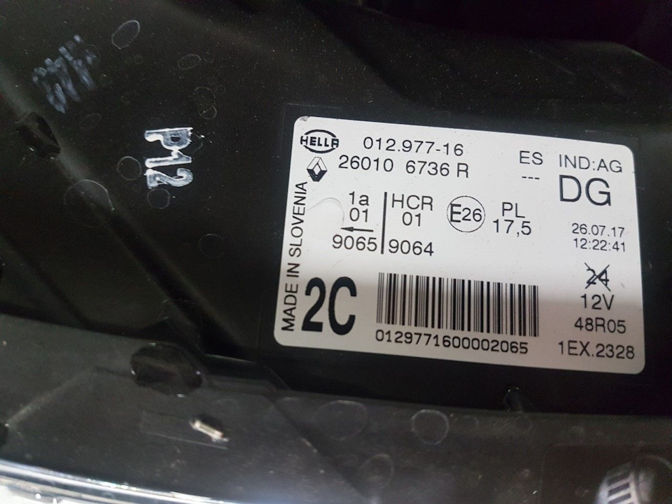 маркировка светодиодной фары рено каптур…и следующий текст "Оптика с диодами имеет надпись HCR, обозначающую обычные галогеновые лампы. Однако шифр всех отражателей и линз дополнительно содержит приставку LED, а их конструкция существенно отличается."