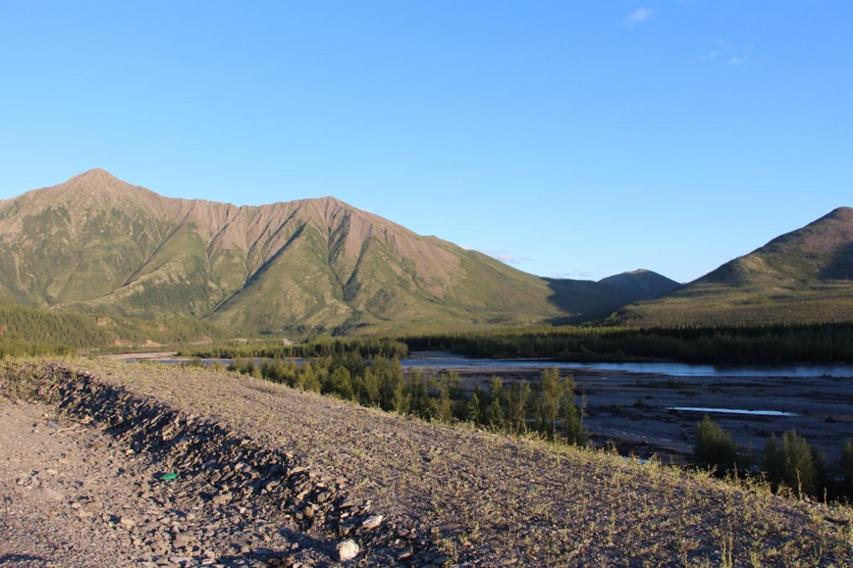 Выехали из Тёплого ключа и вот оно — мы вознаграждены за наши скитания. Вокруг величественные сопки. Перевал петляет и представляет нам виды, прям как завзятый экскурсовод. То высокие лиственницы, то покрытые ковром ягеля сопки (они мягкие и на ощупь, нога валится сантиметров на 10), то петляющие реки внизу. И дорога…классная грунтовка без ям…стакан можно ставить. И этот пьянящий воздух.
